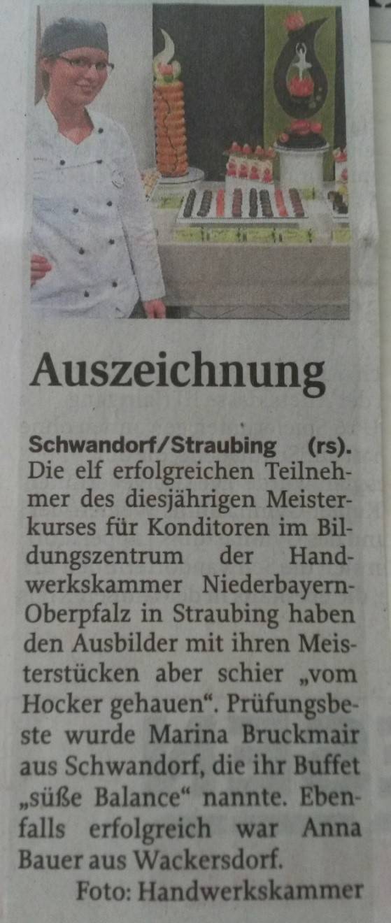 Im November 2014 habe ich meine Meisterprüfung im Konditorenhandwerk als Prüfungsbeste abgelegt.